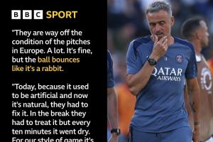 恩里克说:“这里的球场条件与欧洲的球场差得很远。差别很大,虽然还算可以,但球在场地上弹跳得像兔子一样。