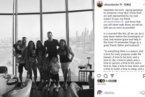 体育资讯7月5日讯 利物浦前锋迪奥戈-若塔在一起交通事故中去世,年仅28岁。对此,阿利森在社媒发文悼念。