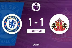 体育资讯10月25日讯 北京时间10月25日22:00,2025-26赛季英超联赛第9轮,切尔西坐镇斯坦福桥球场迎战桑德兰。上半场内托助攻加纳乔破门,伊西多扳平,切尔西暂1-1桑德兰。