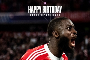 拜仁官方社媒晒出于帕梅卡诺的生日海报,配文:“生日快乐,于帕梅卡诺今天27岁了。”