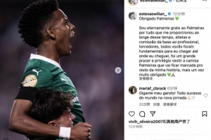 体育资讯7月5日讯 在帕尔梅拉斯世俱杯出局后,埃斯特旺即将前往切尔西效力。今日他更新社交媒体发文向帕尔梅拉斯告别。