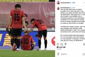 体育资讯7月6日讯 韩国K2联赛,第19轮,庆南1比1战平安山绿人。庆南前锋布鲁诺-科斯塔为球队打进扳平一球,赛后,作为若塔前队友的布鲁诺-科斯塔更新社交媒体,他表示将进球献给若塔兄弟。