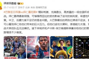 体育资讯07月06日讯 世俱杯1/4决赛,巴黎2-0淘汰拜仁,詹俊发文点评了本场比赛。