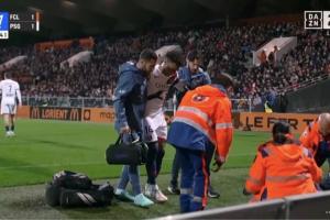 体育资讯10月30日讯 法甲第10轮,巴黎对阵洛里昂。杜埃突破中倒地,表情十分痛苦,最后被担架抬出场。