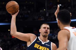 此役,约基奇出战27分33秒,15中10,其中三方2中1,0罚球,得到21分12板10助攻1抢断1盖帽,正负值+25。