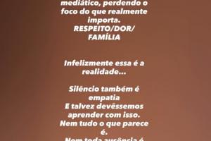 也许我们应该从中学习。并非所有的表象都是真相,并非所有的缺席都是不敬,并非所有的在场都是支持。我在谈论的是痛苦,而不是聚光灯。我知道普通人很难理解,我不会再多说了。”