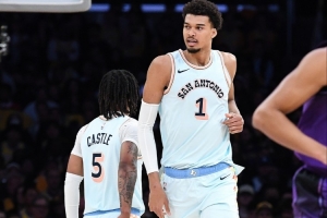 谈到比赛中和文班的那次空接时,卡斯尔说道:“他跟我说往月球上扔。那个球真的是往月球扔,而他接住了。”