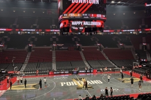 新赛季NBA杯首战遇上万圣节!开拓者队记晒球队主场地板